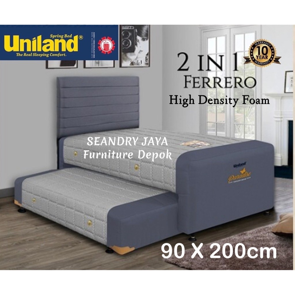 Harga Spring Bed Uniland - Jual Spring Bed Uniland Paradise Plush Top 140x200 Arthuro Full Set Kota Tangerang Selatan Paragon Furnitur Tokopedia. Uniland latex rebonded 20 cm divan sandaran hilton. Kasur ini di buat dengan menggunakan bonnel spring 6 ulir, dengan kawat yang berdiameter lebih besar, yaitu 2.4 mm. Uniland springbed menawarkan kenyamanan penuh untuk tidurmu, sehingga di waktu bangun tidur kamu kembali bersemangat dan ceria. Perpaduan yang unik antara latex impor dan rebounded, lembut di permukaan namun keras di tengah, menjadikan uniland latex rebonded kasur yang memberikan support yang lebih baik untuk kenyamanan tidur anda namun tidak membuat sakit punggung dan bahu anda. Harga uniland spring bed termurah di indonesia.